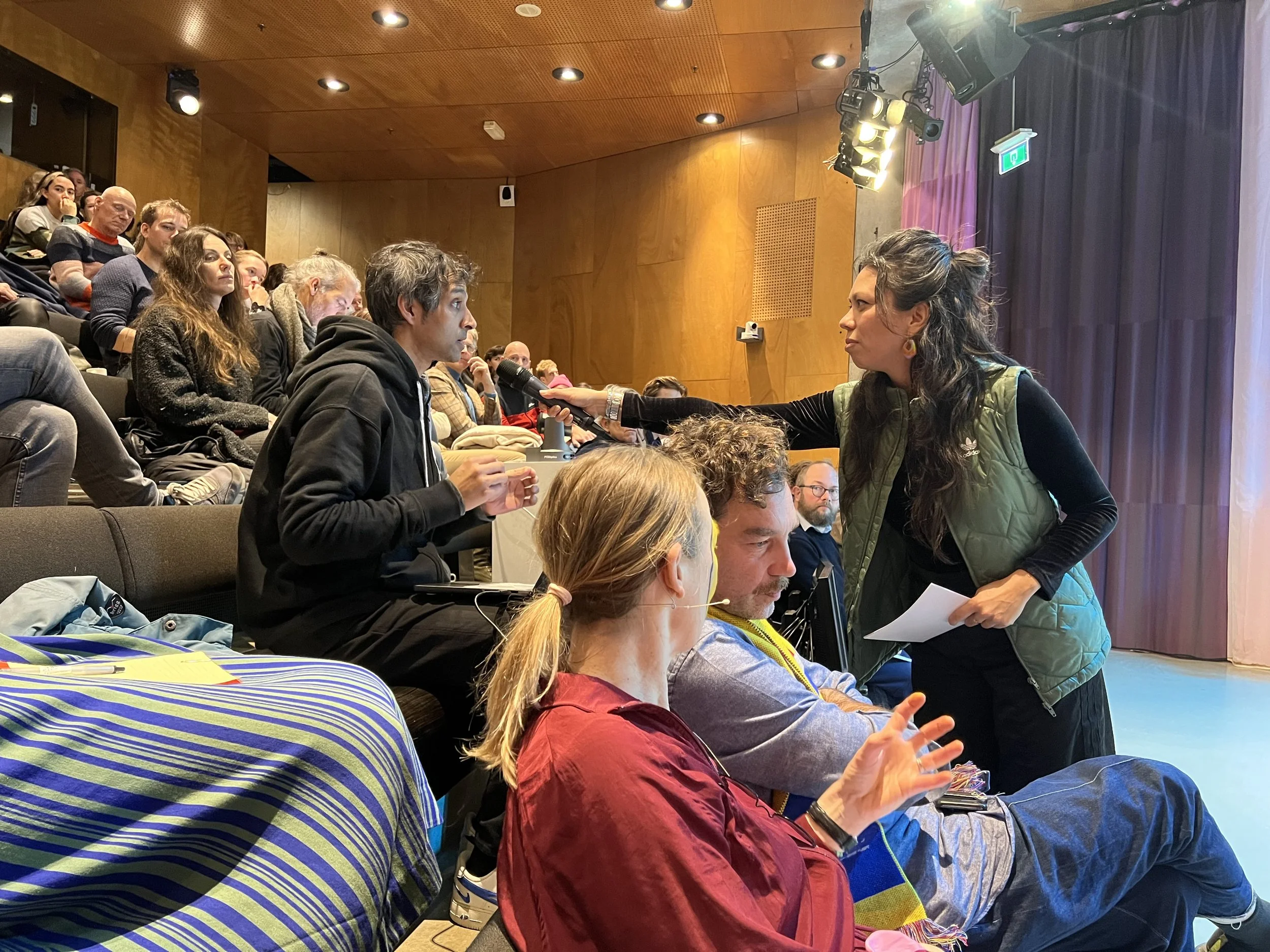 On December 11, 2023, an end-of-year meeting of the Moonshot Digital Culture took place at the Nieuwe Instituut. Participants were approximately 80 people who play a role in the Dutch digital culture sector in a broad sense: makers, producers, researchers, and representatives of presentation, archive and educational institutions. Moderator was Dymphie Braun.